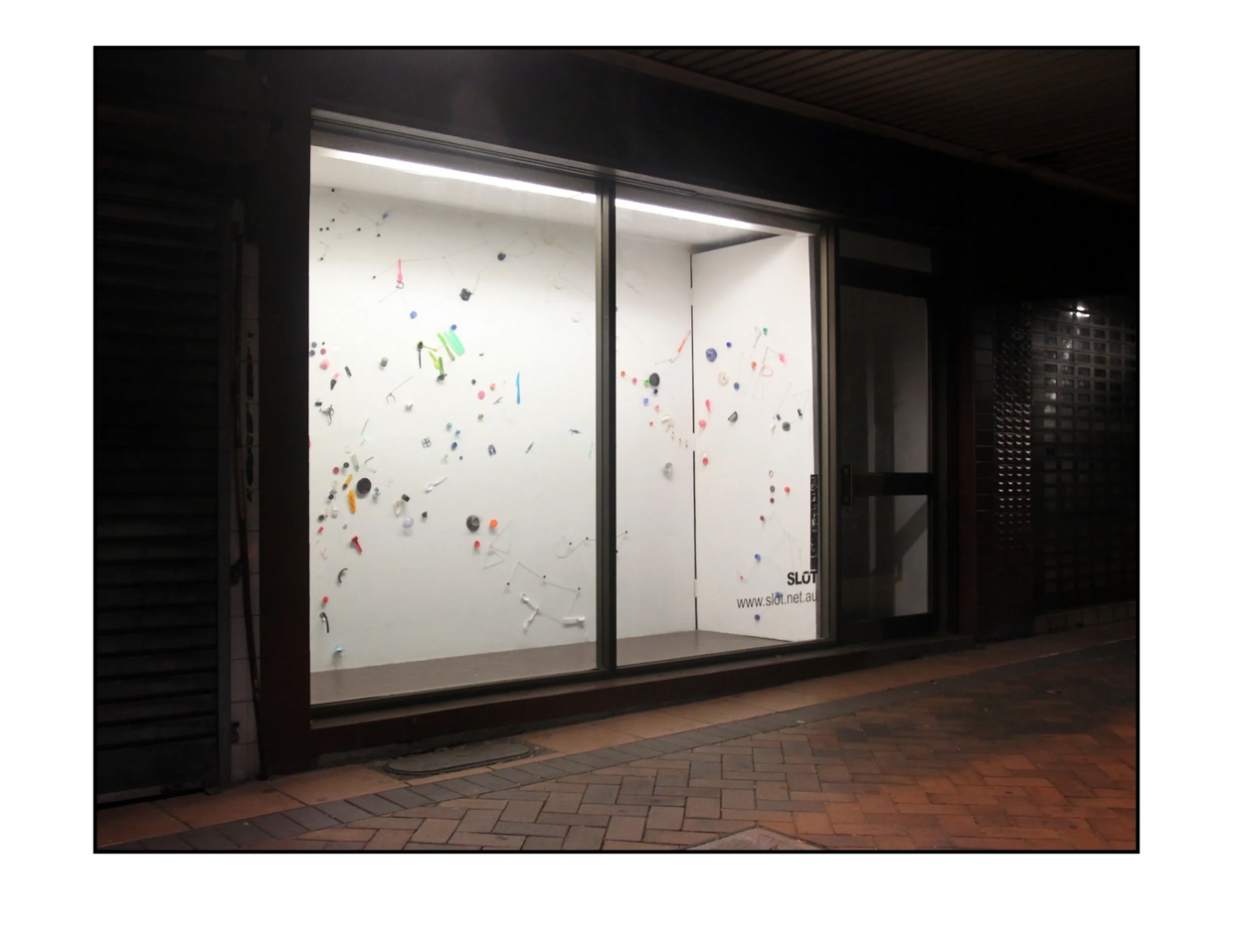 The obsessive process of this work has Susanna in the window space night after night arranging and rearranging her simple found materials. Through her process she turns the idea of an exhibition on its head by utilising the exhibition time as a period of studio practice. It cumulates in the realisation of a work, fleetingly visible, that can only be known in its passing.