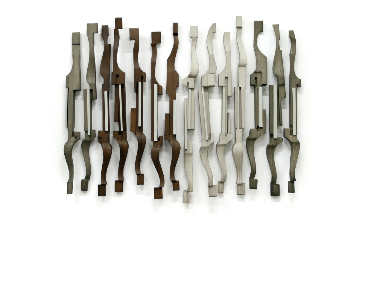His life began in Geelong. Moved to New York State, Sydney and Melbourne, to Wellington, back to Melbourne. Around 1973 he moved into a share house in Carlton with some art students, his inspiration, completed a science degree then enrolled at Caulfield Teck to study printmaking. After a brief stint in Bendigo he landed a job teaching printmaking in Perth at Curtin University. Then he noticed as he said that his art was to do with “transfer and repetition”. And it’s easy to imagine each part of this work as a printing plate kissing its image on to the wall in softly reflected light. Given the title - Mirror, number 20 you might consider the work an elaboration of a printing process and even wonder if it’s the object, it’s refection or the process involved in its making that is the subject of the art work.